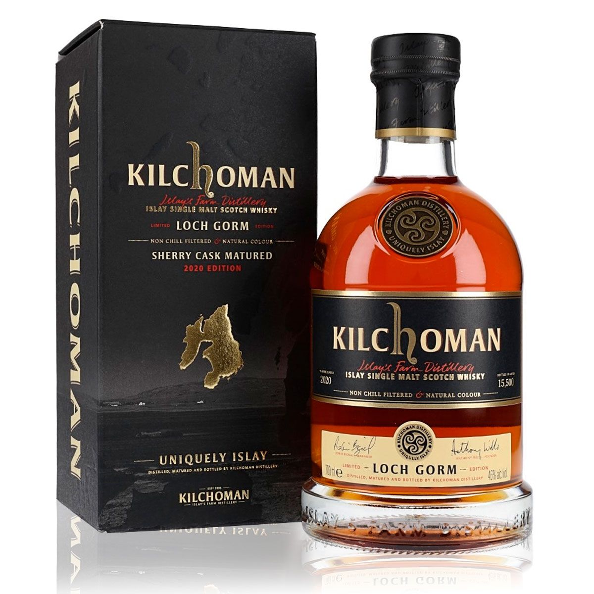 Kilchoman Loch Gorm es un whisky escocés de malta única que proviene de la destilería Kilchoman, ubicada en la isla de Islay. Se caracteriza por su rica complejidad, con notas de turba, frutas secas y un toque de chocolate oscuro. Loch Gorm es conocido por su envejecimiento en barricas de jerez Oloroso, que le aportan un carácter afrutado y ahumado.