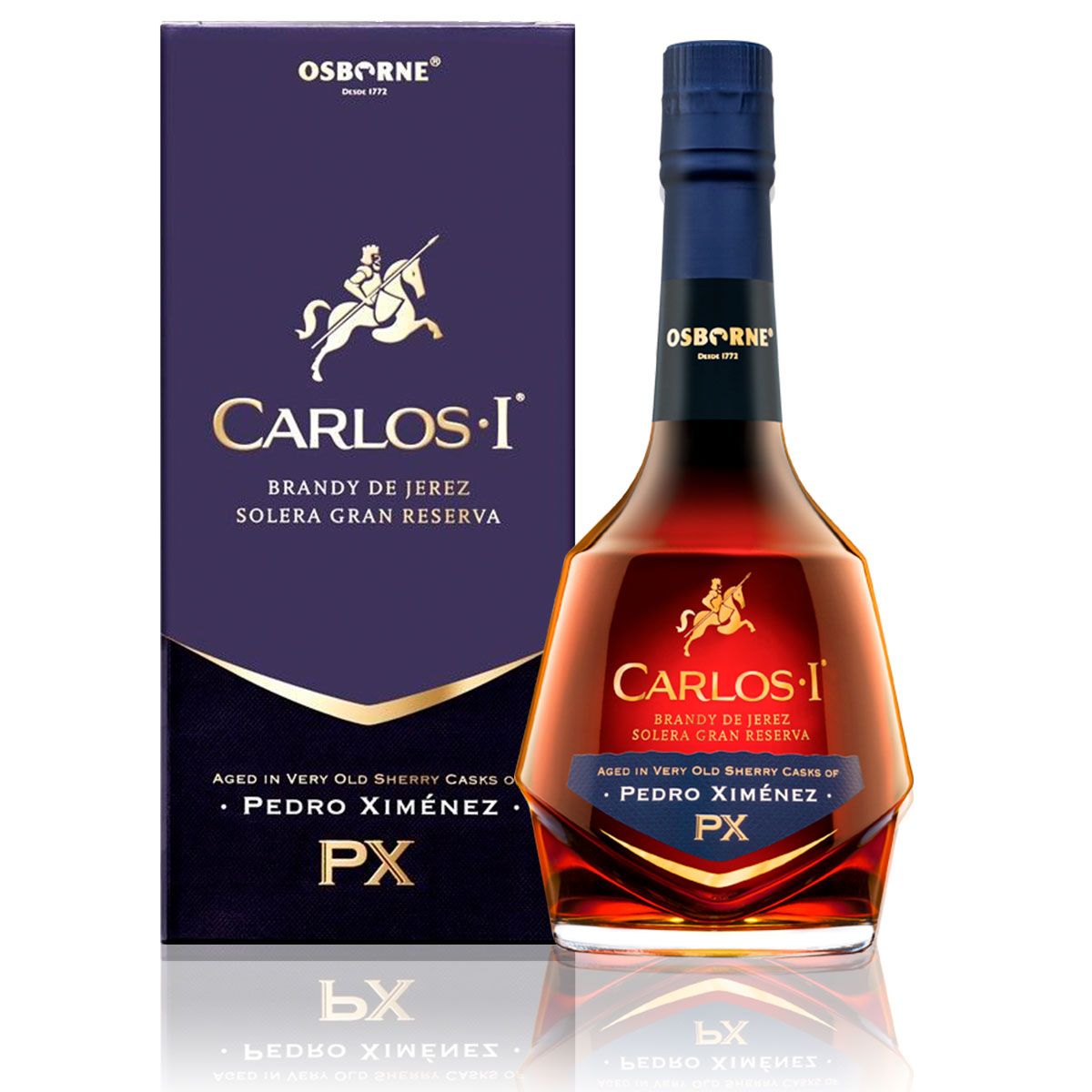 El brandy Carlos I PX es un brandy de lujo originario de España. Su nombre hace referencia al emperador Carlos I de España. Este brandy se distingue por su envejecimiento en barricas de jerez Pedro Ximénez, lo que le otorga un sabor dulce y afrutado con matices de pasas, ciruelas y nueces. Es una elección elegante para disfrutar después de una comida.